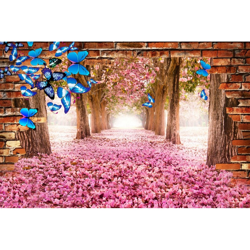 Теги: бабочки, цветы, аллея, деревья, стена, кирпич, для коридора
