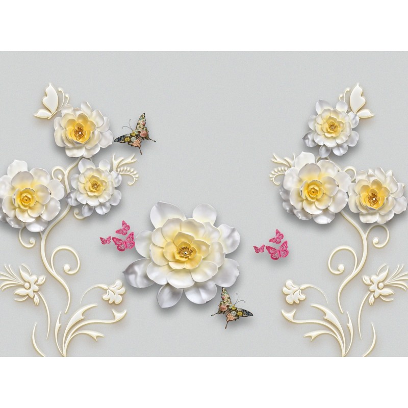 Вы можете заказать фотообои "Белые розы с бабочками" под Ваши размеры для размещения в жилом помещении или для декорирования внешней стены, дома (здания)