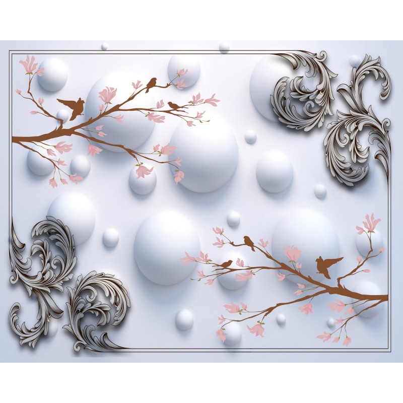 Теги: Утро, ветви, сферы, цветы, птицы, узоры.