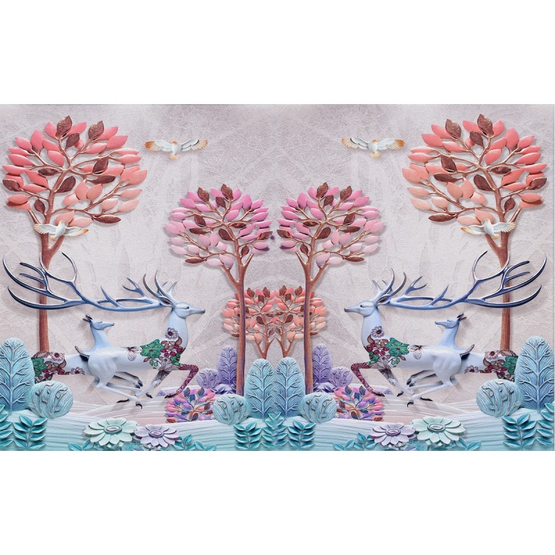 Теги: птицы, деревья, олени, цветы, кусты, природа