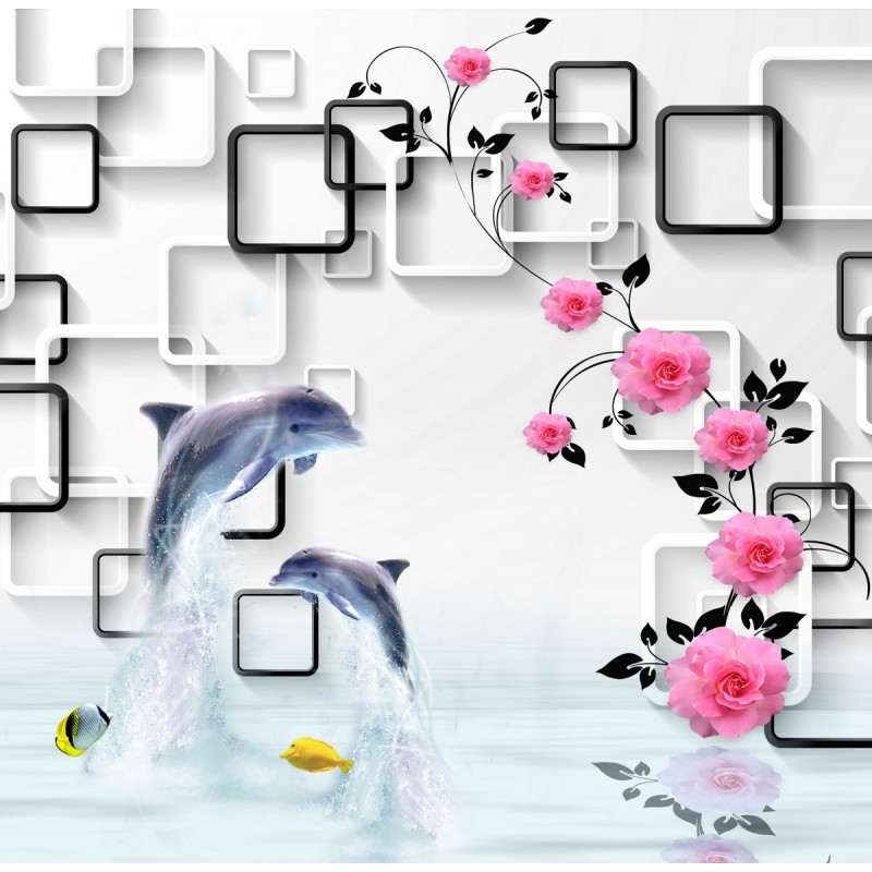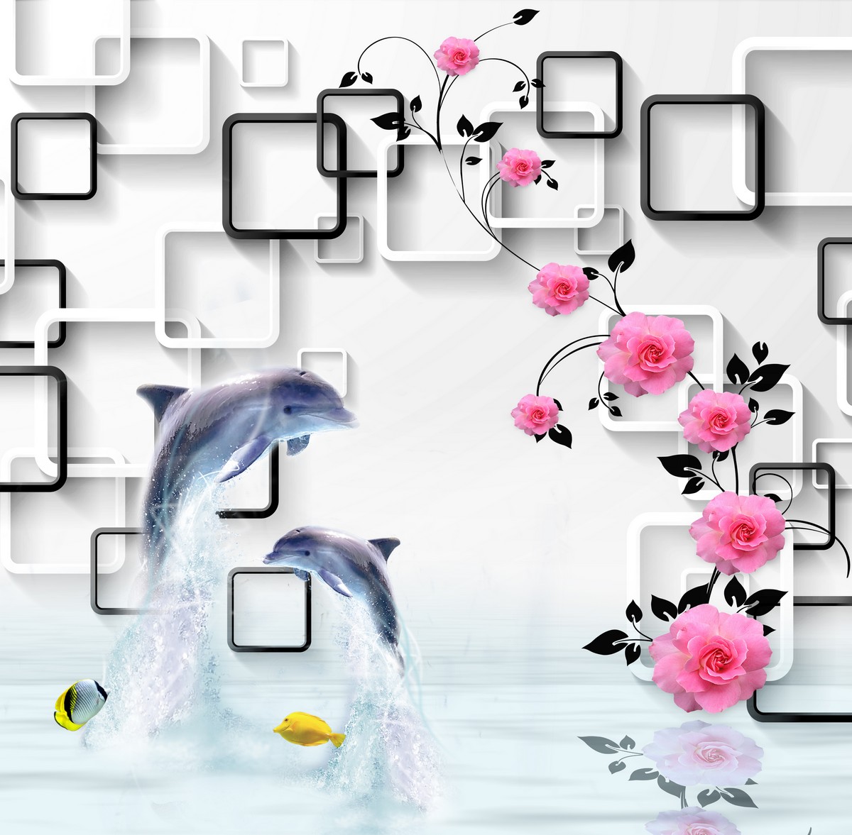 Вы можете заказать фотообои "Дельфины в водных гранях" под Ваши размеры для размещения в жилом помещении или для декорирования внешней стены, дома (здания)
