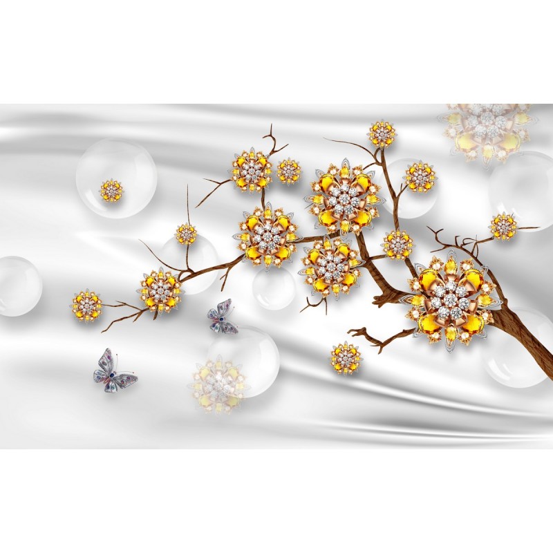 Вы можете заказать фотообои "Деревья с золотыми цветами" под Ваши размеры для размещения в жилом помещении или для декорирования внешней стены, дома (здания)