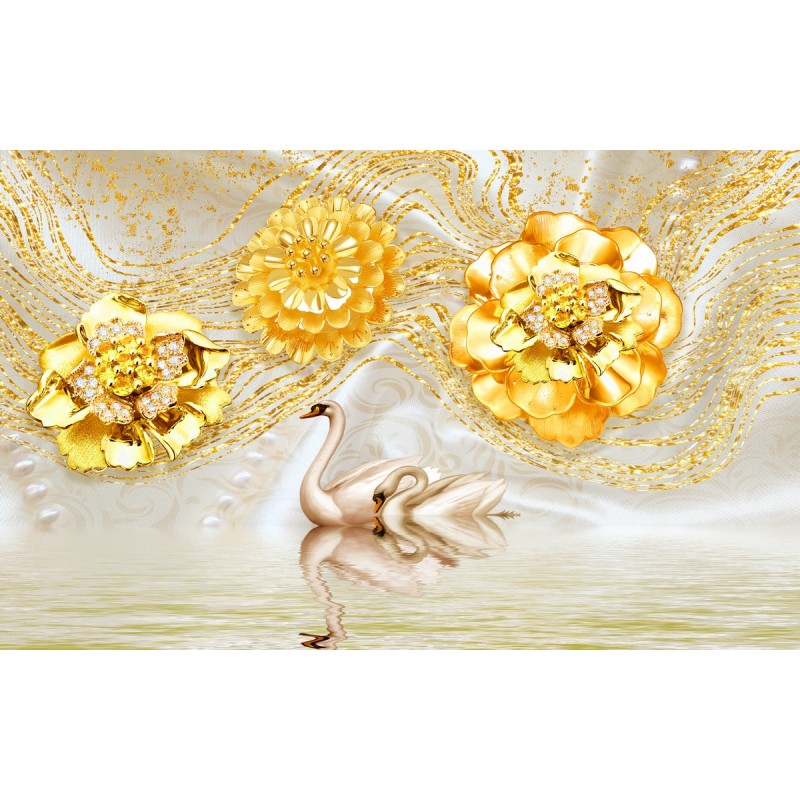 Теги: цветы, золото, брилианты, птицы, лебеди, вода