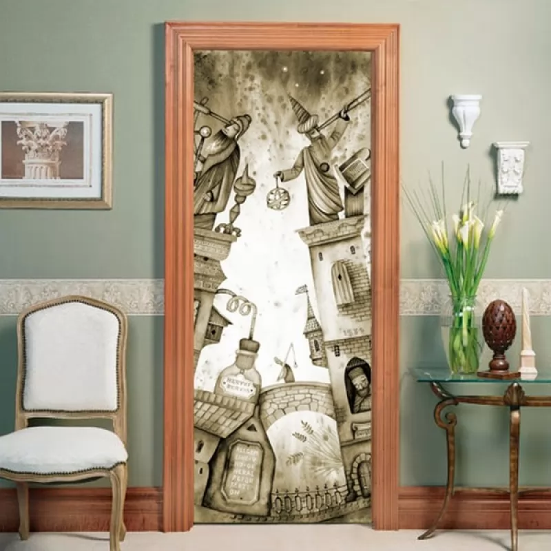 Полноцветные фотообои (наклейки) на двери предназначены для эксклюзивного декорирования ровных поверхностей межкомнатных дверей.