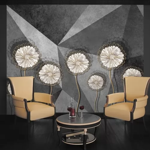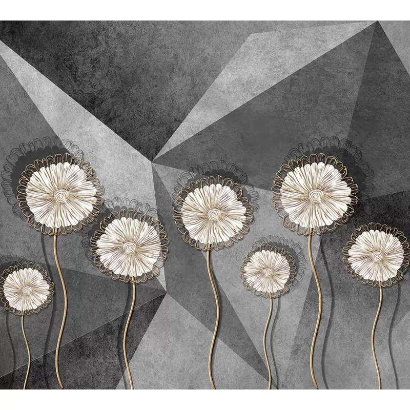 Теги: фотообои, Ситиарт, Сити арт, Cityart, City art, панно, 3D, серый, искусственные цветы, цветы из проволоки, абстракция, геометрия