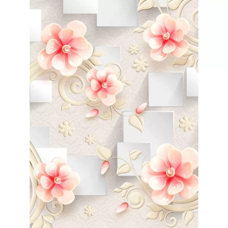 Теги: фотообои, Ситиарт, Сити арт, Cityart, City art, панно, 3D, цветы, розовый, белый, фарфор