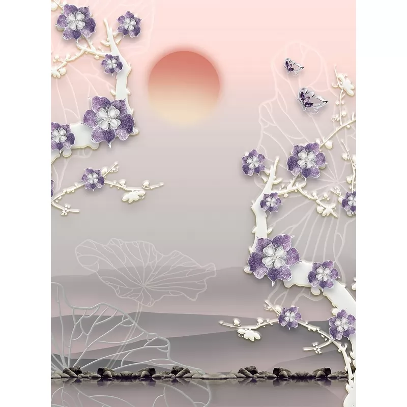 Теги: фотообои, Ситиарт, Сити арт, Cityart, City art, панно, драгоценные камни, перламутр, керамика, розовый, белый, сиреневый, стразы, 3D, цветущие ветки, восход солнца, рассвет