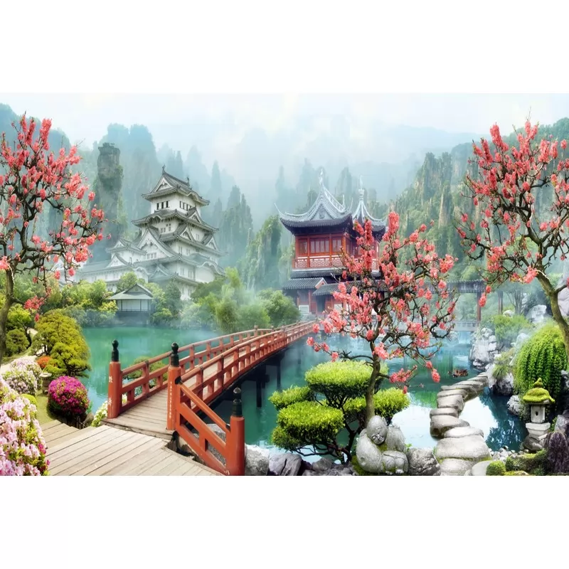 Теги: фотообои, Ситиарт, Сити арт, Cityart, City art, панно, природа, восток, растения, мост, вода