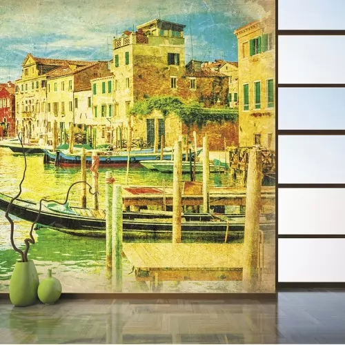 Теги: фотообои, Ситиарт, Сити арт, Cityart, City art, панно, фреска, рисунок, живопись, желтый, гондола, венеция, город, река