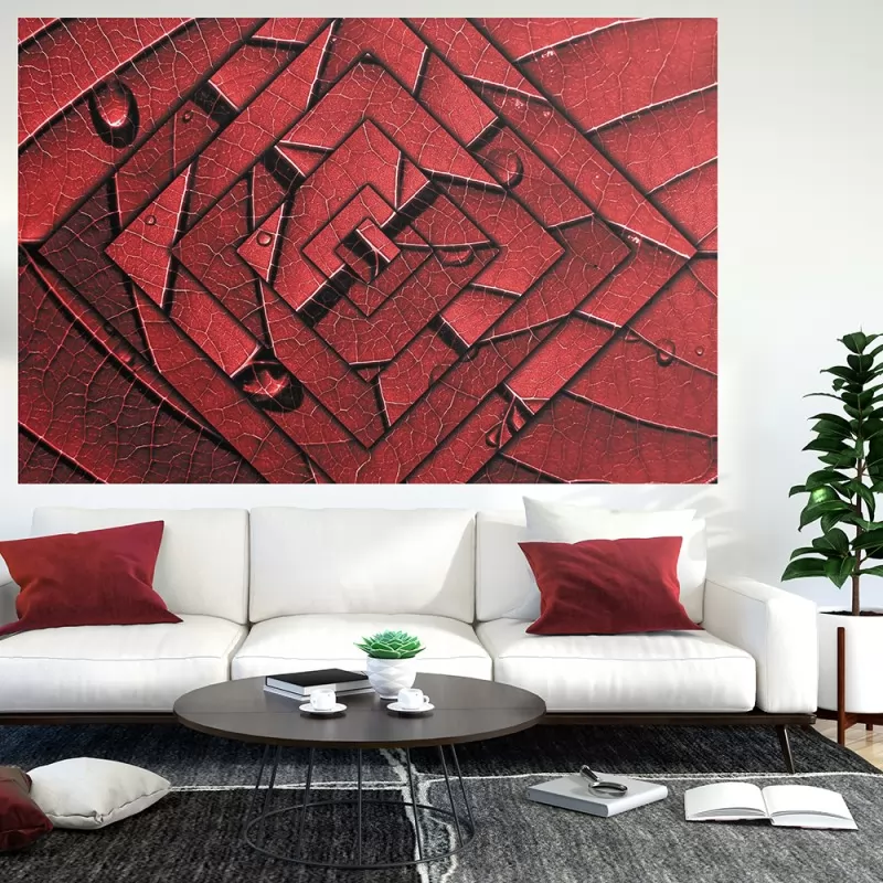 Теги: фотообои, Ситиарт, Сити арт, Cityart, City art, панно, горизонтальные, фактурные, красный, прожилки, роса, макро, абстракция, геометрия, 3D