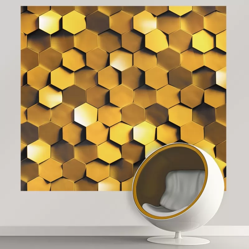Теги: фотообои, Ситиарт, Сити арт, Cityart, City art, панно, абстракция, шестиугольники, соты, мед, желтый фон, геометрия