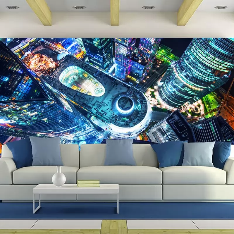 Теги: фотообои, Ситиарт, Сити арт, Cityart, City art, панно, для расширения пространства, ночной город, огни, дома, небоскребы, крыши, вид сверху, мегаполис