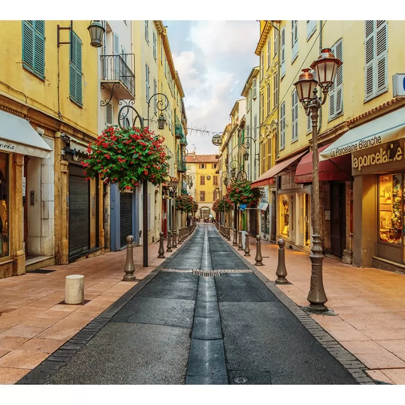Теги: фотообои, Ситиарт, Сити арт, Cityart, City art, панно, фактурные, для кухни, для гостиной, для прихожей, улица города, Франция, булыжная мостовая, магазинчики, пешеходная улочка, европейский городок, фонари