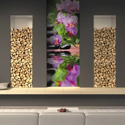 Теги: фотообои, Ситиарт, Сити арт, Cityart, City art, панно, фактурные, для кухни, для прихожей, вода, цветы, орхидеи, камни СПА, умиротворение, гармония, розовый, сиреневый