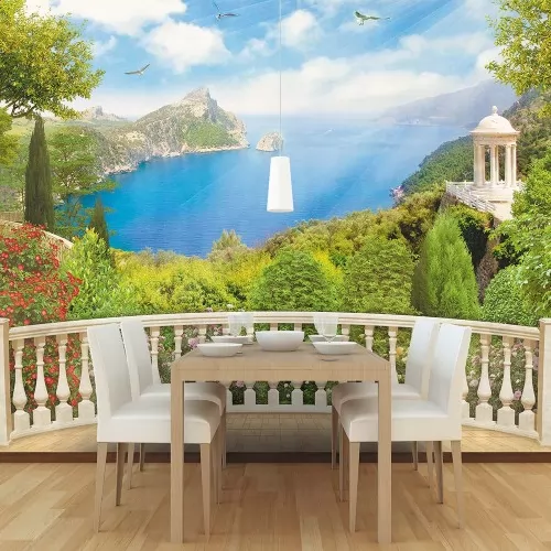 Теги: фотообои, Ситиарт, Сити арт, Cityart, City art, панно, море, горе, солнце, чайки, балкон, для расширения пространства