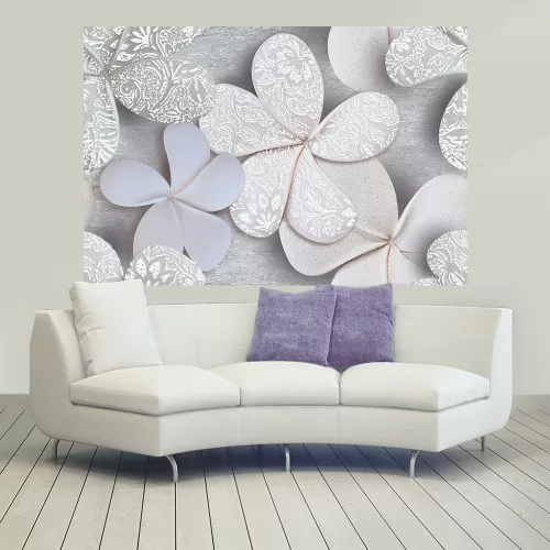 Теги: фотообои, милан, milan, панно, горизонтальные, фактурные, 3D, лепестки, цветы, белый, серый, бежевый, абстракция