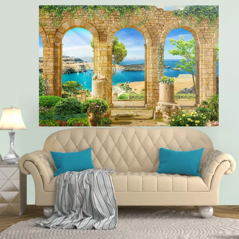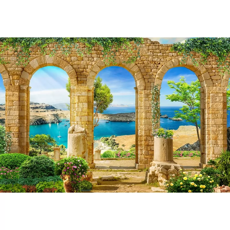 Теги: фотообои, милан, milan, панно, горизонтальные, фактурные, каменные арки, колонны, зелень, море, берег, античный