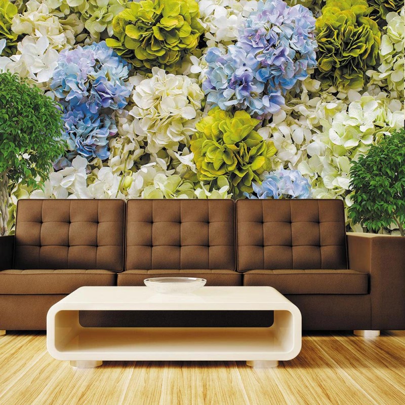 Теги: фотообои, милан, milan, панно, цветы, природа, зеленый, салатовый, голубой, белый, гортензия, макроцветы