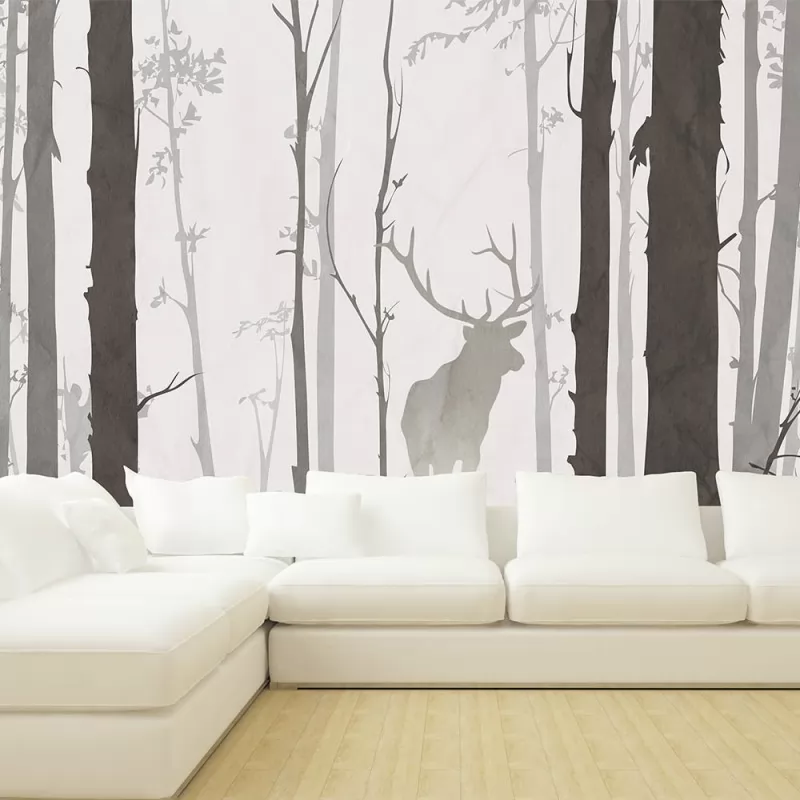 Теги: фотообои, ситиарт, сити арт, cityart, city art, для спальни, для гостиной, абстракция, светло-серый, панно, лес, светлый фон, природа, деревья, олень