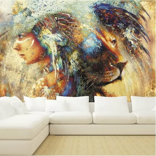 Теги: фотообои, милан, milan, фотопанно, рельефные, абстракция, женщина, лев, рисунок, живопись, яркие краски, этно