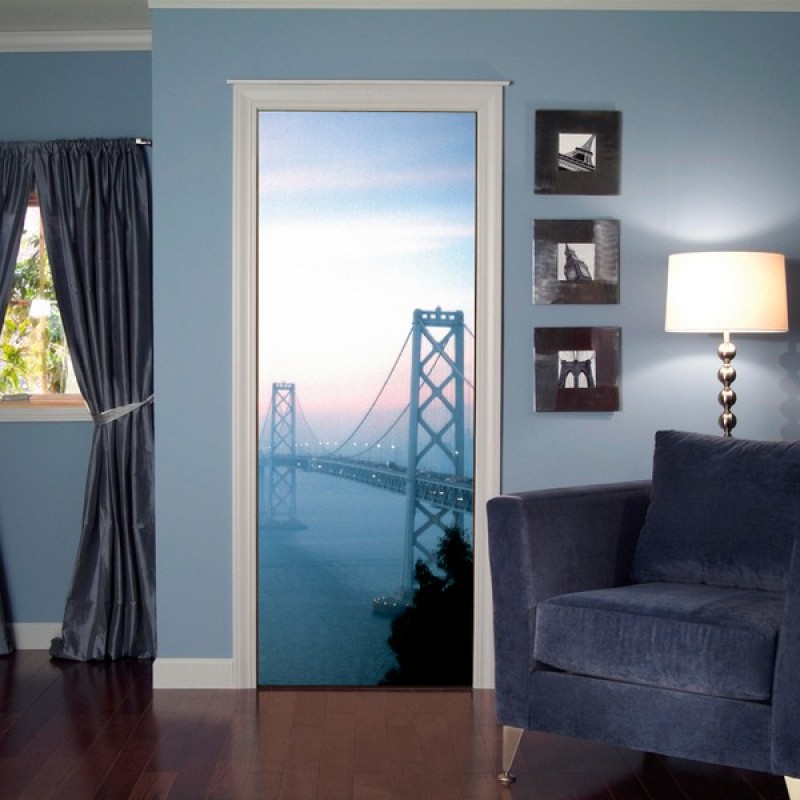 Полноцветные фотообои (наклейки) на двери предназначены для эксклюзивного декорирования ровных поверхностей межкомнатных дверей.