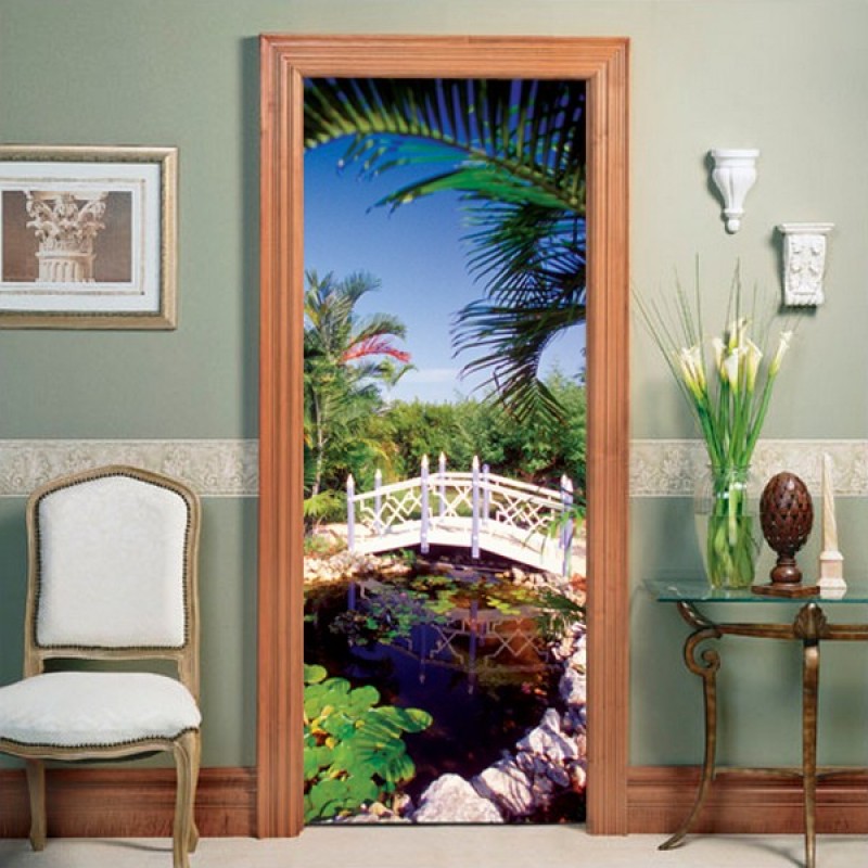 Полноцветные фотообои (наклейки) на двери предназначены для эксклюзивного декорирования ровных поверхностей межкомнатных дверей.