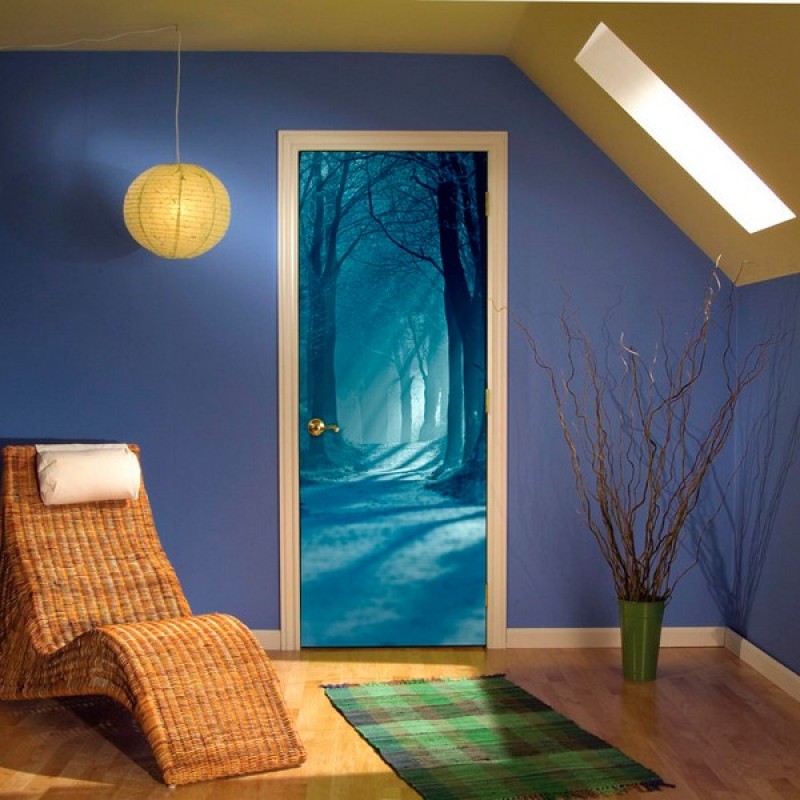 Полноцветные фотообои (наклейки) на двери предназначены для эксклюзивного декорирования ровных поверхностей межкомнатных дверей.