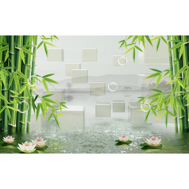 Теги: бамбук, цветы, зелень, озеро, лотос, пейзаж