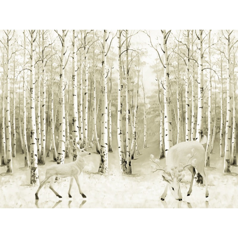 Теги: лес, березы, деревья, животные, олени, природа, пейзаж