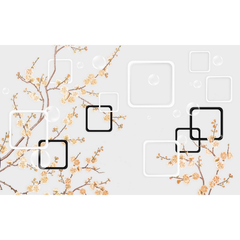 Теги: Ветви, золото, квадраты, цветение, фигуры, простота.