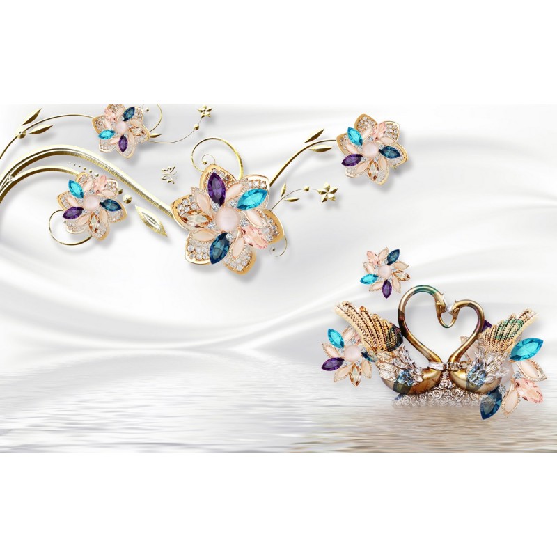 Теги: цветы, золото, лебеди, самоцветы, драгоценности, вода