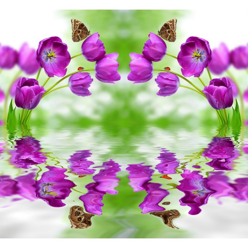 Теги: цветы, бабочки, вода, тюдьпан, колокольчик, для гостинной, природа