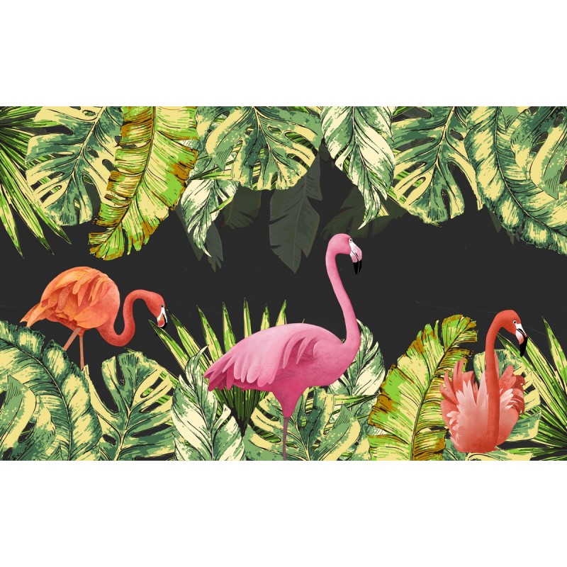Вы можете заказать фреску "фламинго в тропиках" под Ваши размеры для размещения в жилом помещении или для декорирования внешней стены, дома (здания)