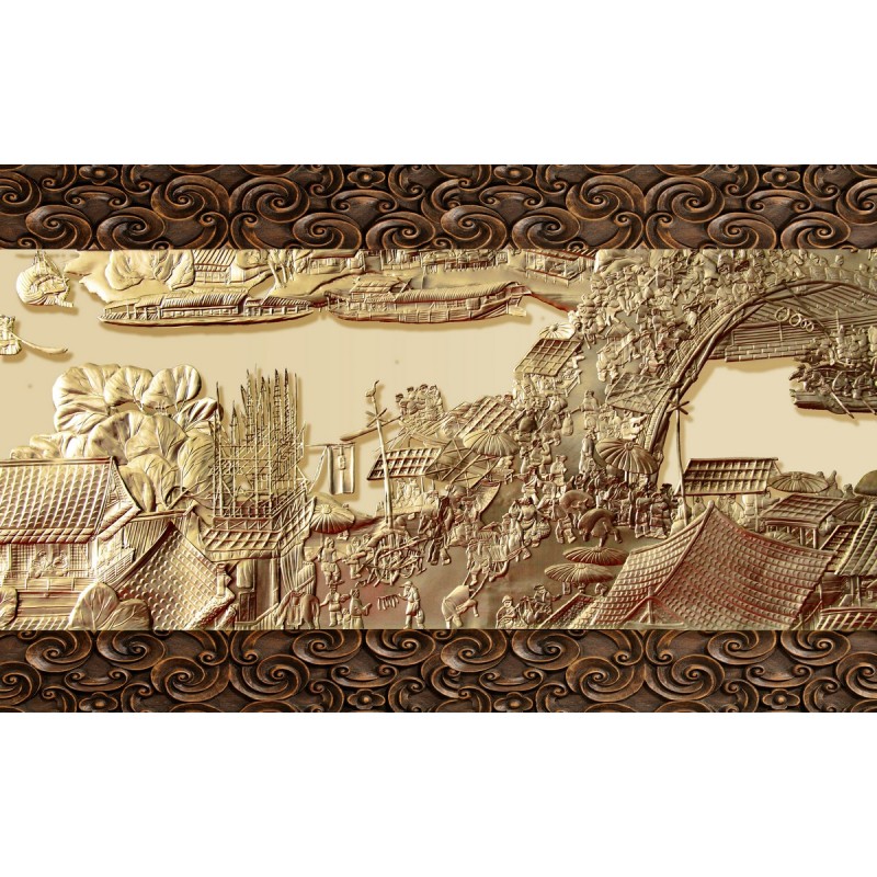 Теги: Гравюра, объем, город, золото, рамка, картина.