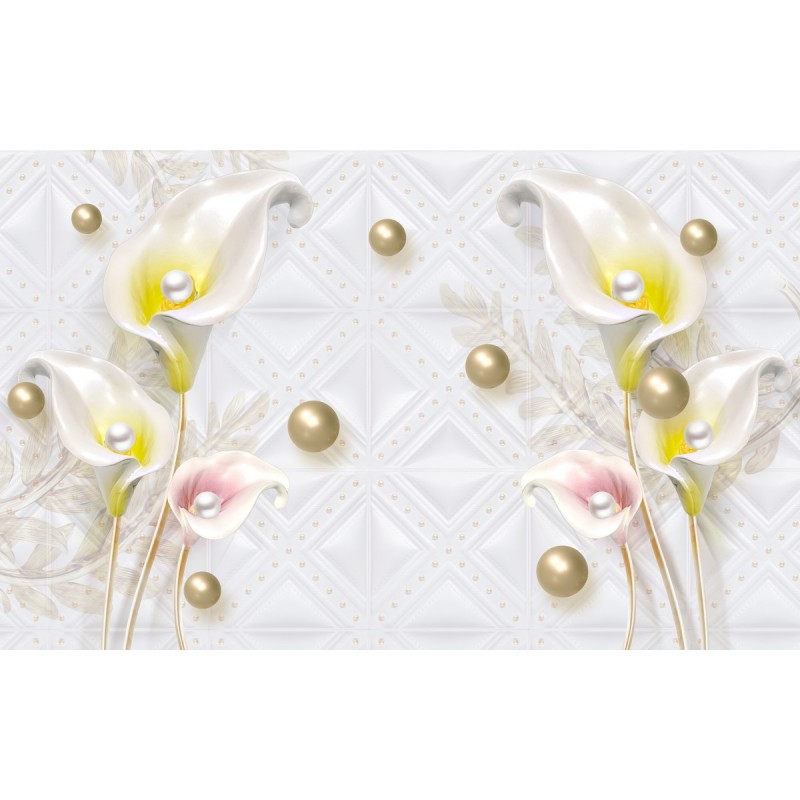 Вы можете заказать фреску "Каллы в золотом жемчуге" под Ваши размеры для размещения в жилом помещении или для декорирования внешней стены, дома (здания)
