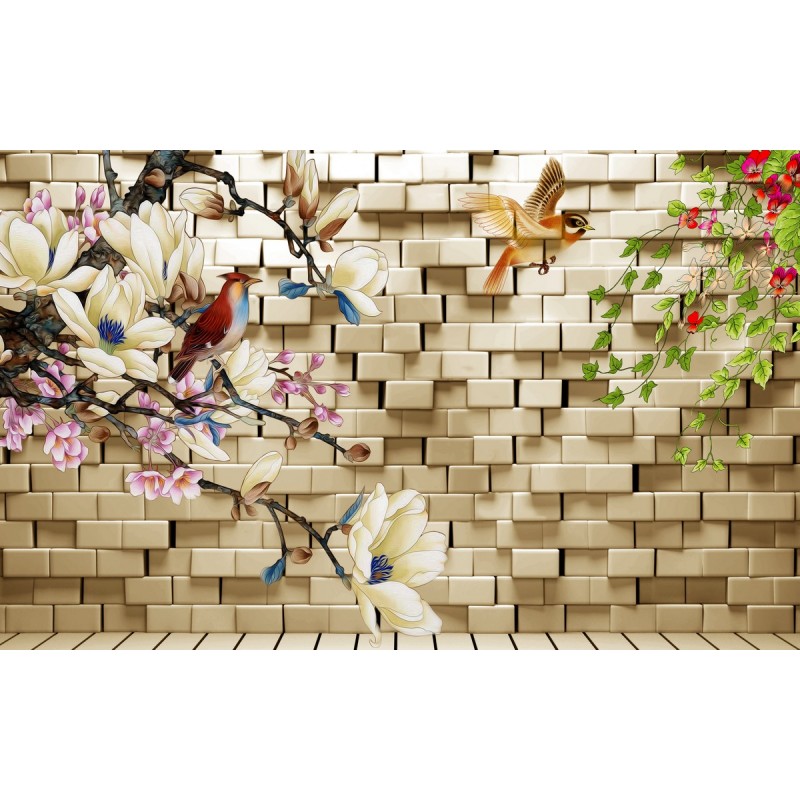 Теги: стена, птицы, дерево, 3D, магнолия, графика, цветы