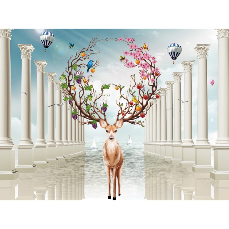 Теги: Ольень, животные, волшебство, для детской, для девочки, воздушный шар, цветы, птицы