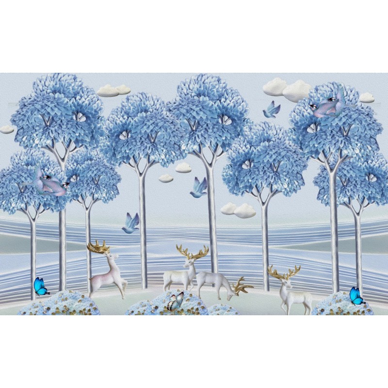 Теги: Лес, птицы, облако, олень, небо, бабочки