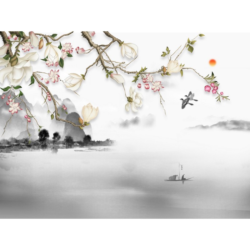 Теги: 3d, птицы, дерево, сакура, для спальни, для холла, вода
