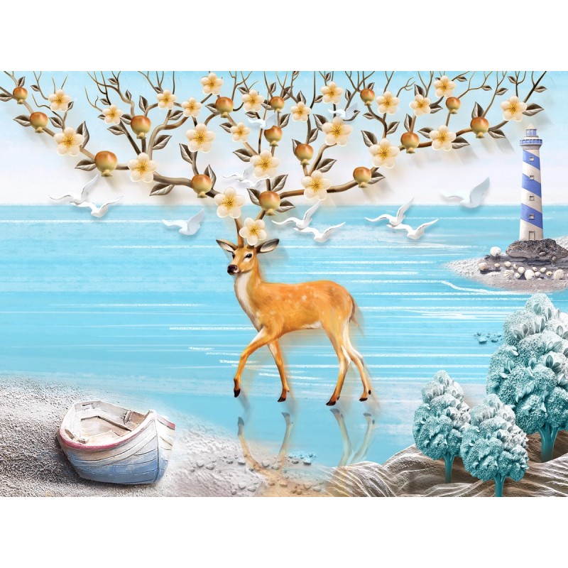Теги: олень, птицы, море, вода, маяк, природа, небо