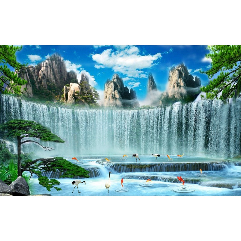 Теги: водопад, горы, птицы, деревья, цапля, вода, рыбы