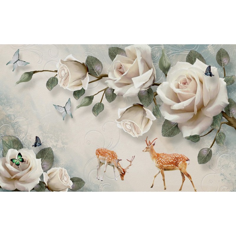 Теги: розы, цветы, бабочки, олени, ветка, узоры, животные