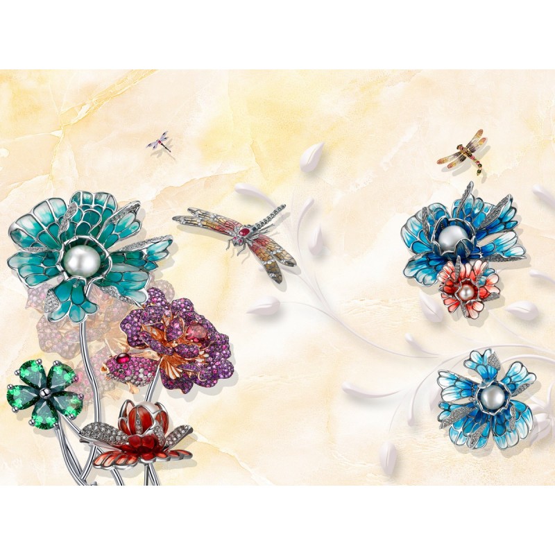 Теги: Цветы, стрекоза, жемчуг, блеск, драгоценность, изящность.