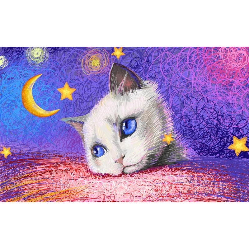 Теги: кот, животные, ночь, звезды, для детской, для девочки, для мальчика