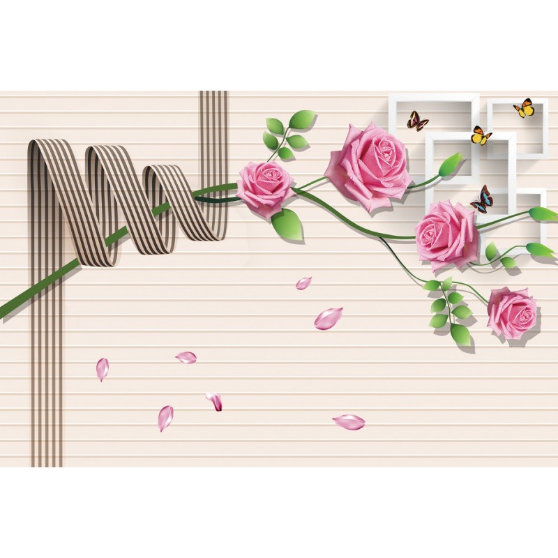 Вы можете заказать фреску "Розовые розы в лентах" под Ваши размеры для размещения в жилом помещении или для декорирования внешней стены, дома (здания)