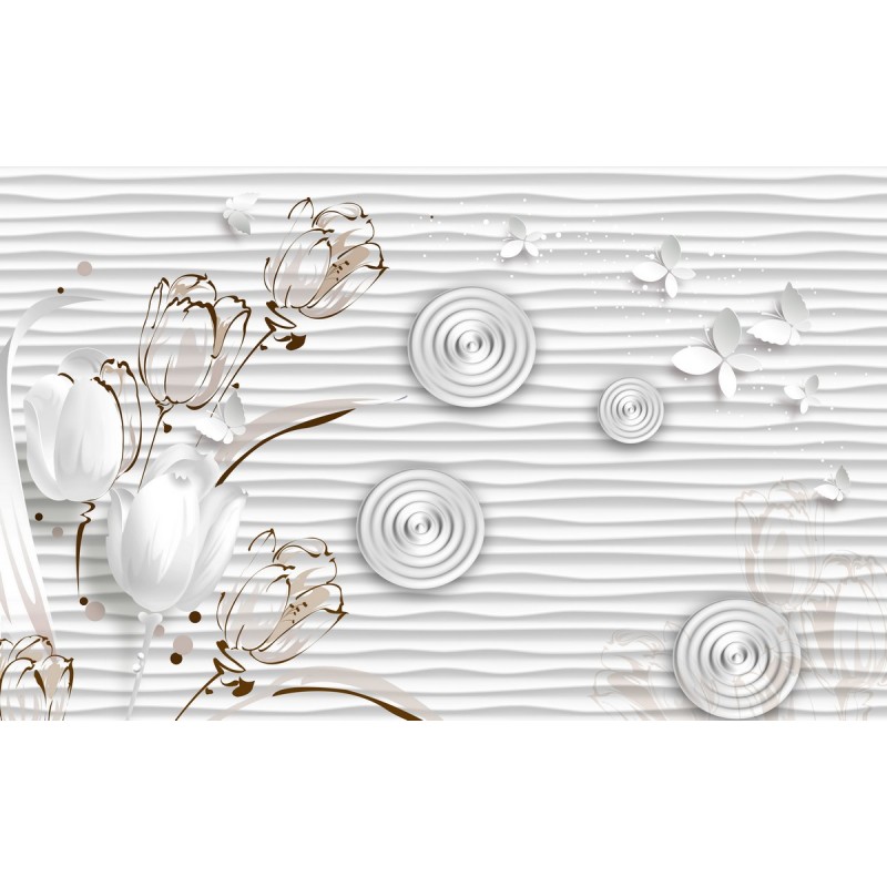 Вы можете заказать фреску "Снежные тююльпаты в спирали" под Ваши размеры для размещения в жилом помещении или для декорирования внешней стены, дома (здания)