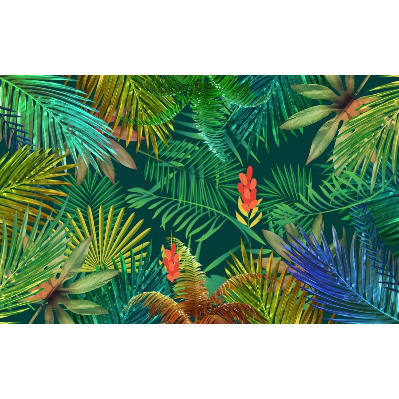 Вы можете заказать фреску "Сверкающие тропические листья" под Ваши размеры для размещения в жилом помещении или для декорирования внешней стены, дома (здания)