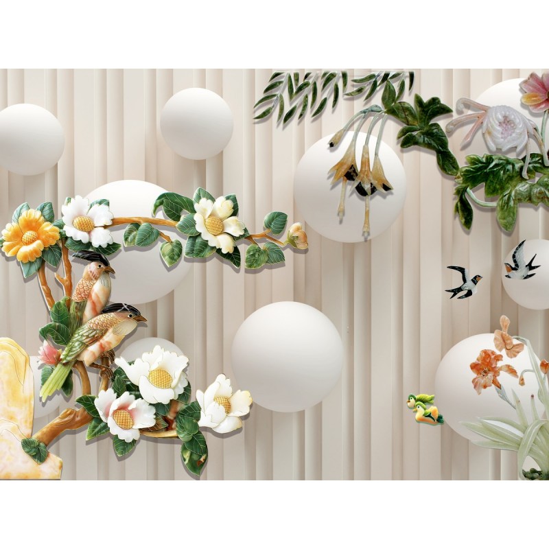 Теги: птицы, цветы, ласточки, шары, сакура, дерево
