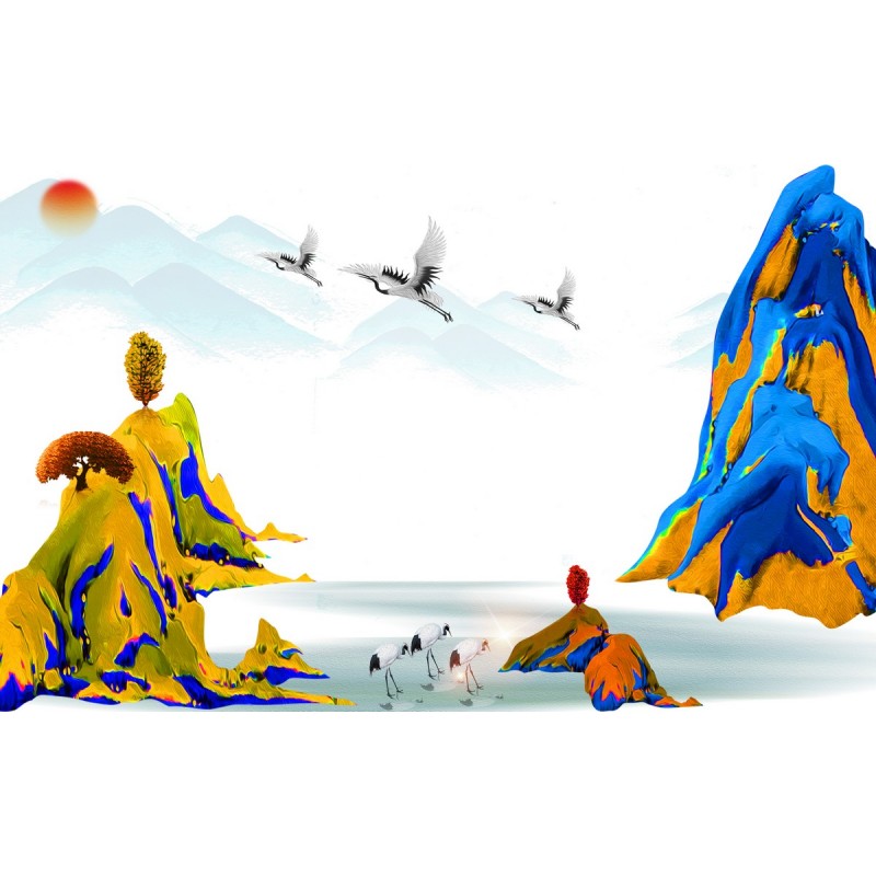 Теги: пейзаж, природа, горы, солнце, птицы, цапли, китай