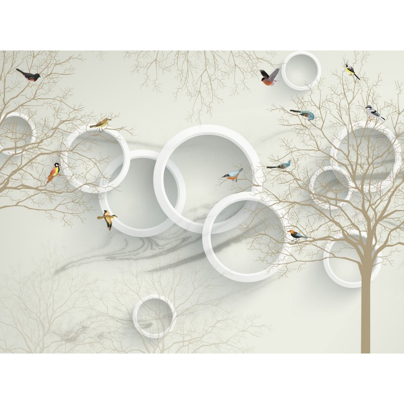 Теги: деревья, птицы, кольца, круги, 3D, графика